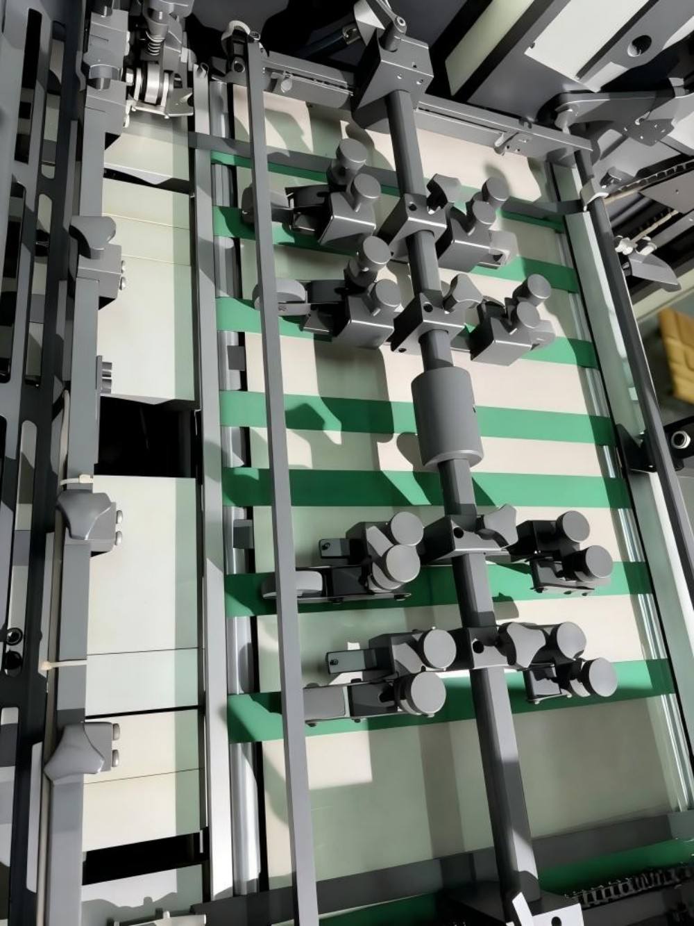 3) تقوم آليات تغذية الورق ونقل الورق ذات الذراع المتأرجح بنقل الورق بتسجيل دقيق، مما يضمن جودة طباعة عالية للصور بسرعة تشغيل عالية تصل إلى 12000 ورقة في الساعة، وبالتالي إنتاجية عالية.