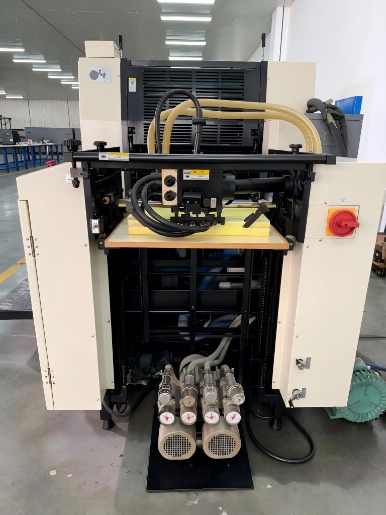 8) تضمن آليات نقل الورق مثل رأس تغذية الورق، وطاولة تغذية ورق الشفط الفراغي، والدليل الأمامي، ومقابض الورق أن المطبعة يمكنها الطباعة على نطاق واسع من الورق من الورق السميك إلى الورق الرقيق.